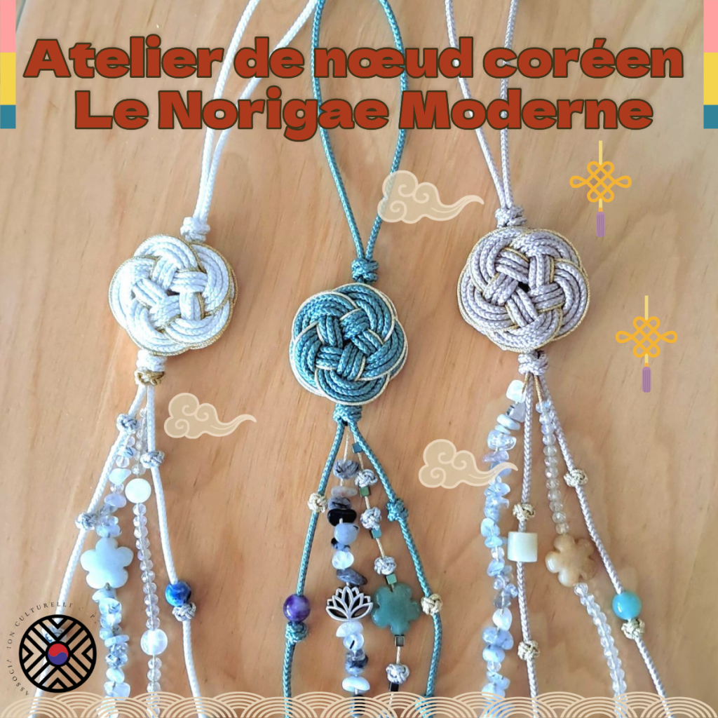 C’est l’occasion idéale pour confectionner votre propre Norigae (accessoire traditionnel pour sacs ou vêtements) avec le nœud Obeol-Garakji, tout en profitant de l’atmosphère chaleureuse d’un café coréen.